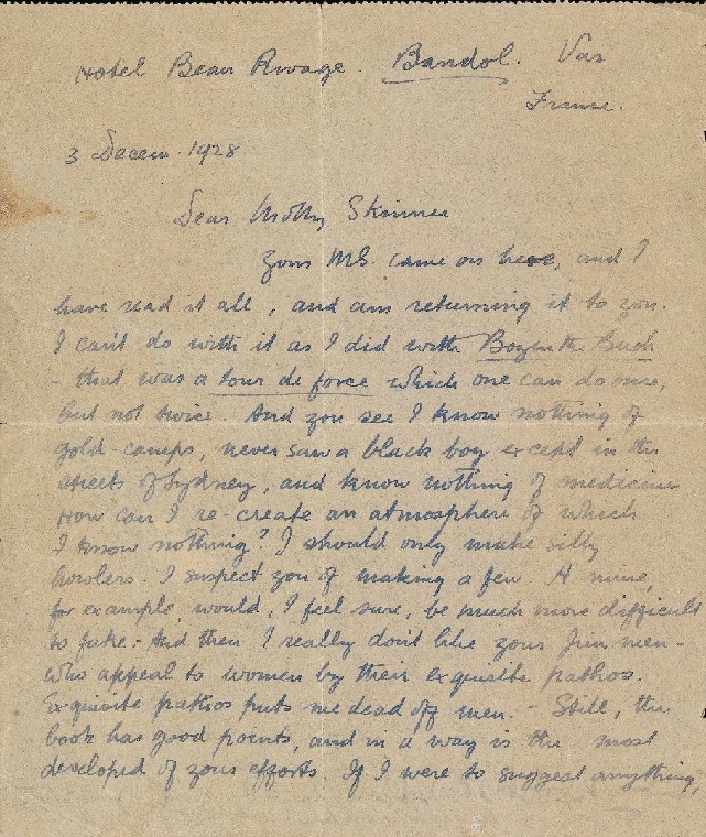 1396A/31/17 D H Lawrence to Mollie Skinner 3 December 1928