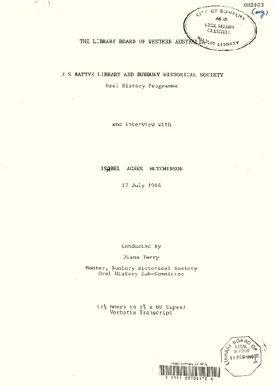 OH2003: Transcript. Interview with Isabel Hutchinson by Diana Terry.