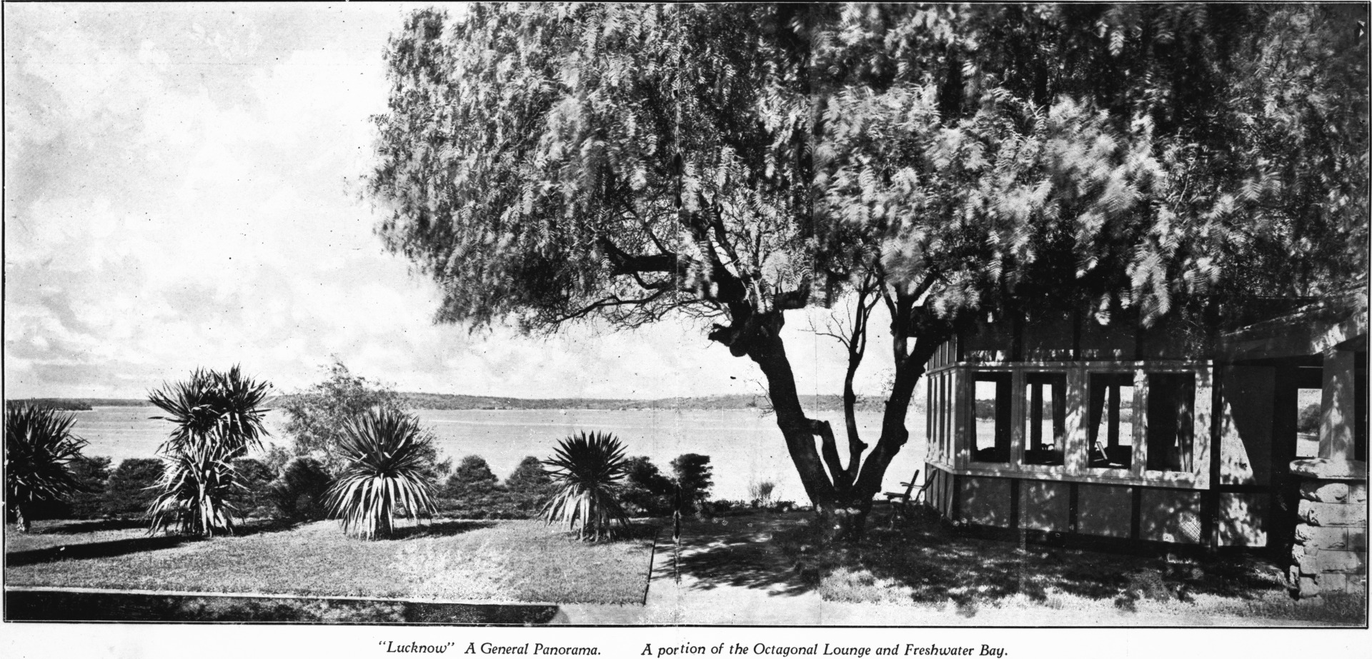 62196PD: General panorama and a portion of the octagonal lounge and Freshwater Bay, Lucknow Private Hospital, Queenslea Drive, Claremont, Western Australia, 1925.