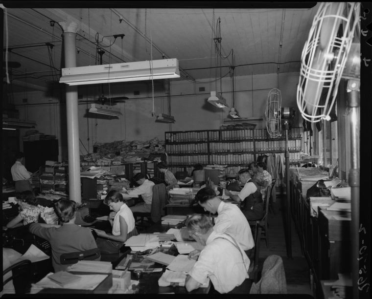 242061PD: Clerks at work at the offices of Co-operative Bulk Handling Limited, Perth, 4 April 1952