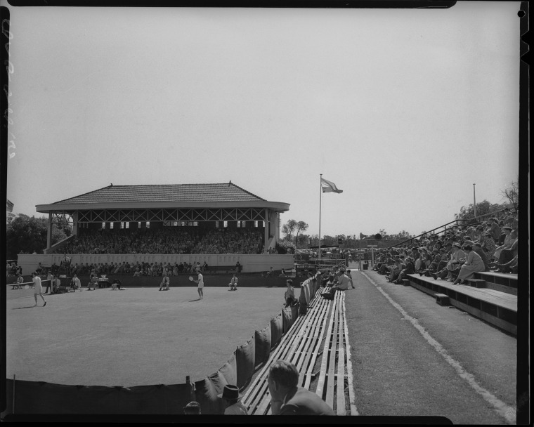 242533PD: Belgium vs India in Davis Cup Tennis at Royal Kings Park Tennis Club, 2 December 1953