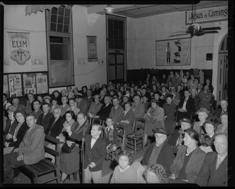 242423PD: A revivalists meeting with American evangelists Elmer and Jean Darnell held at the Elim Foursquare Gospel Church, Mt Lawley, 2 Oct. 1953