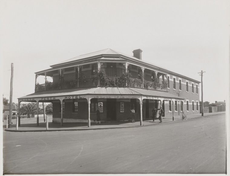BA533/157: North Perth Hotel, corner Charles St and Scarborough Beach Rd (at left), ca.1920