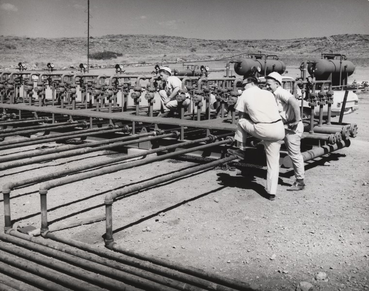 BA875/57: Production manifolds at a separator station on Barrow Island, ca. 1960-1967.