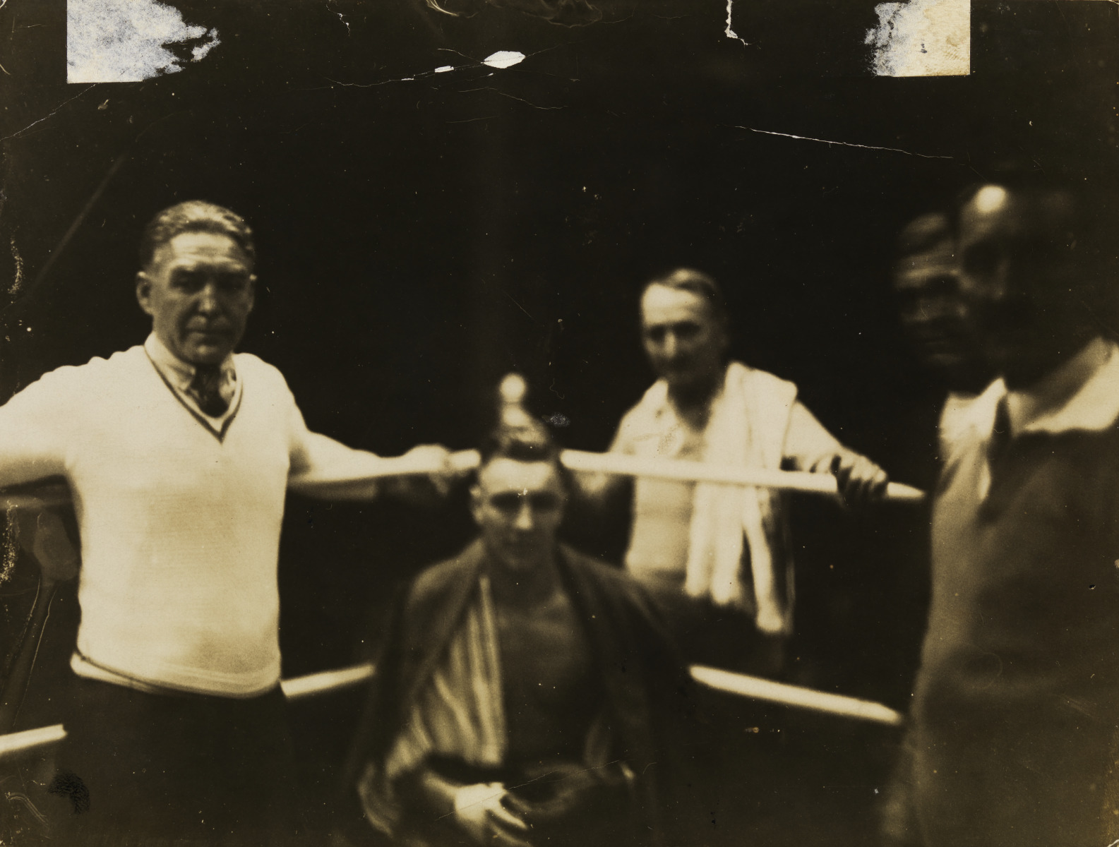 BA1493/13: Sam Chapman, standing in a corner of the ring beside seated boxer, Ambrose Palmer, before a boxing match.