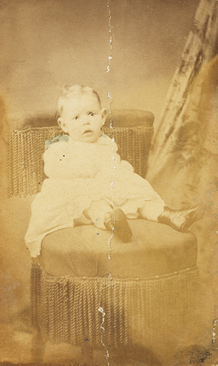 BA1493/1: Studio portrait of James Henry Fellows as a baby on a stool, 1877.