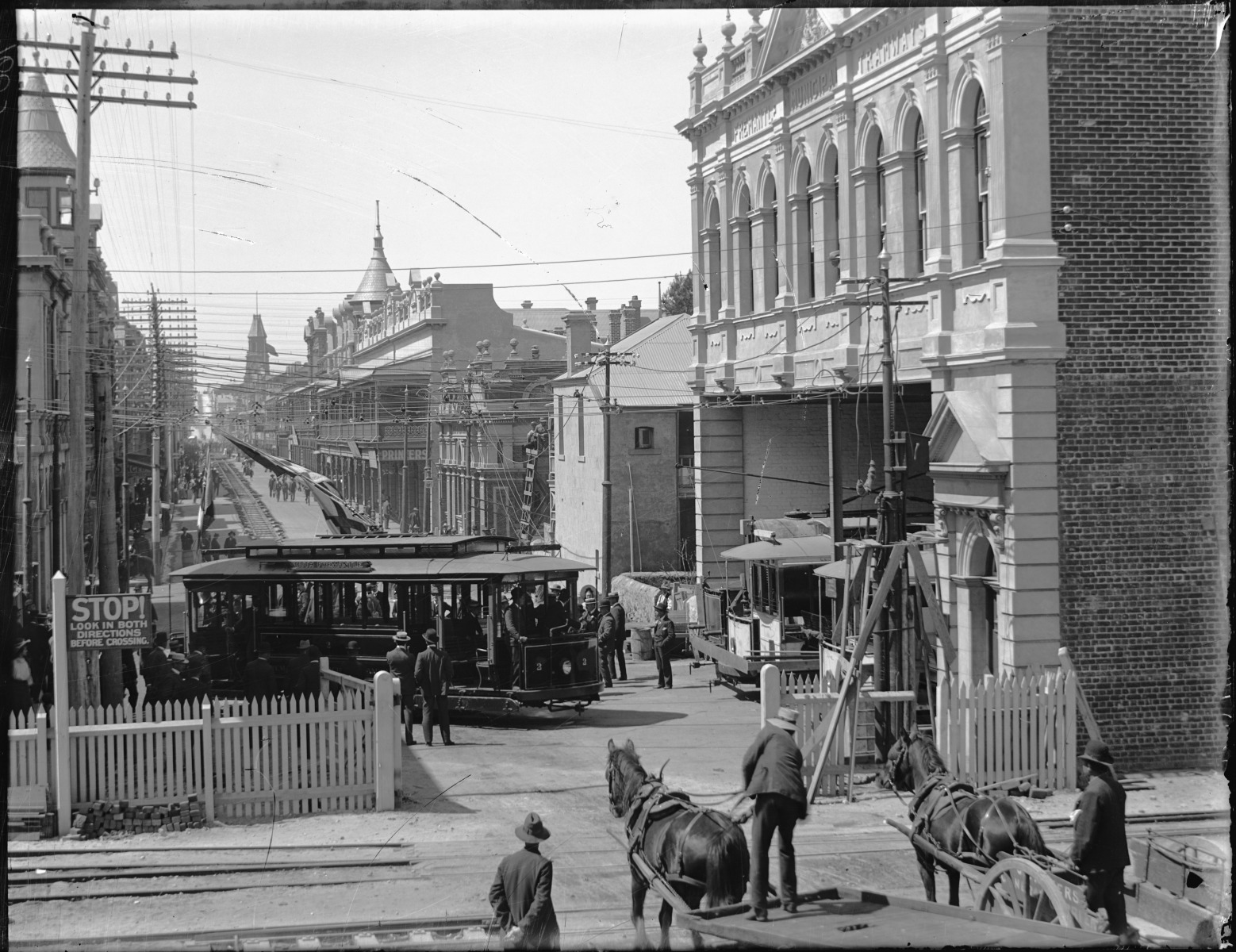 009605PD: Trams decorated with flags for the opening of the Fremantle Municipal Tramways, 30 October 1905