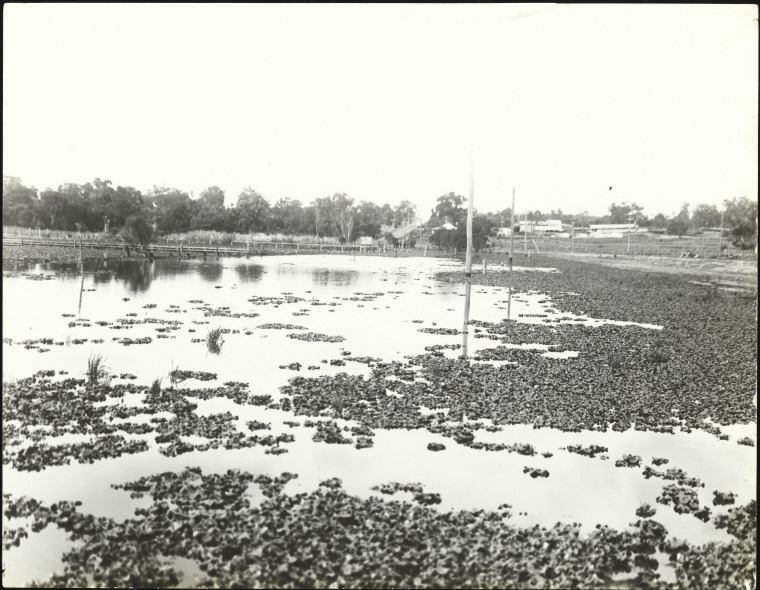 BA1271/491: Wild Dog Swam, on Wanneroo Road, Yokine, 1920. Covered in water hyacinth