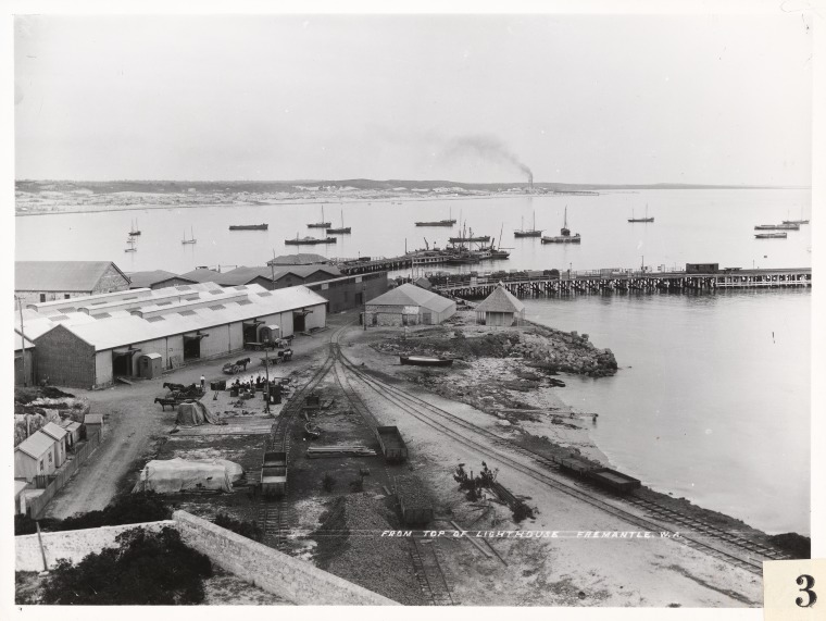 BA533/184: Fremantle Harbour from top of the lighthouse, 1896-1900