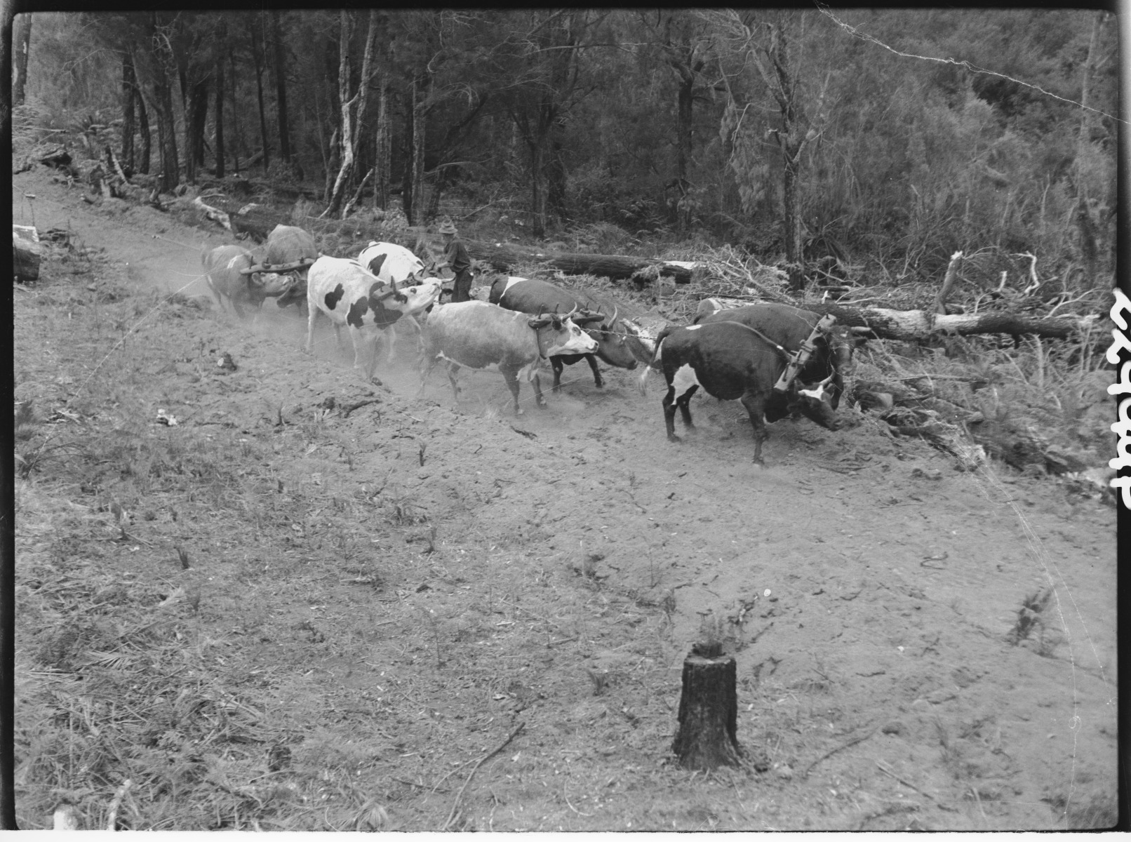 022999PD: Loggers' bullock team, South-West, 1930s?
