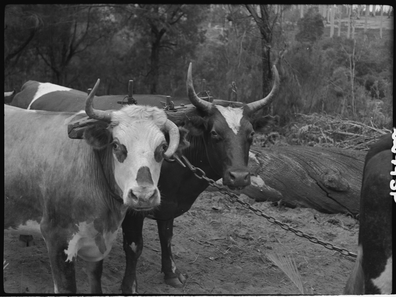 022995PD: Timber felling bullock team, South-West, 1930s?
