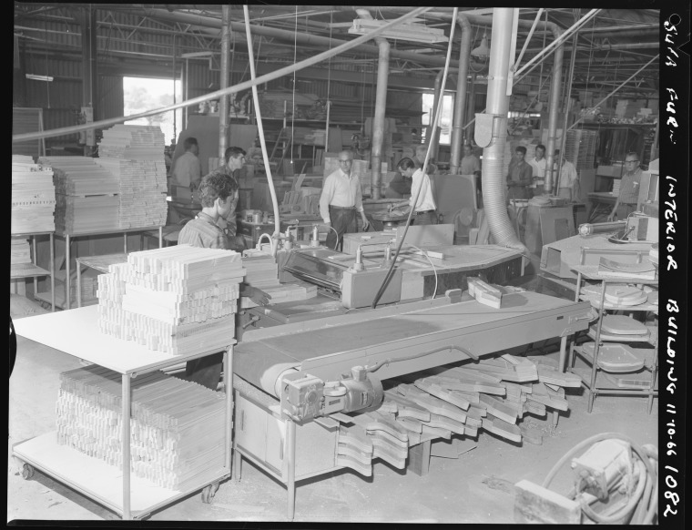 341778PD: Workers cutting timber, 1966