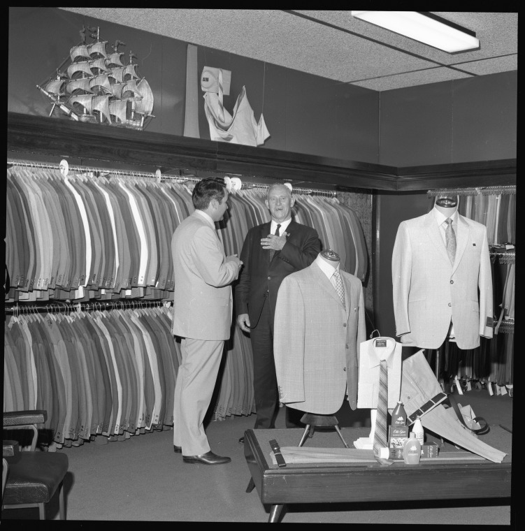 344055PD: Sir David Brand in a menswear shop, 1969.