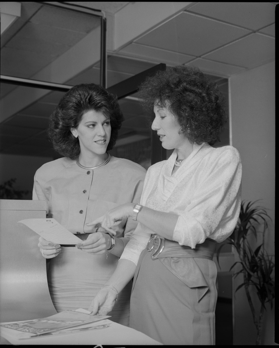 325217PD: Margaret Woodall and Grace Papa in Acton Staff Management office, City Arcade Office Tower, Perth, ca. 1985.