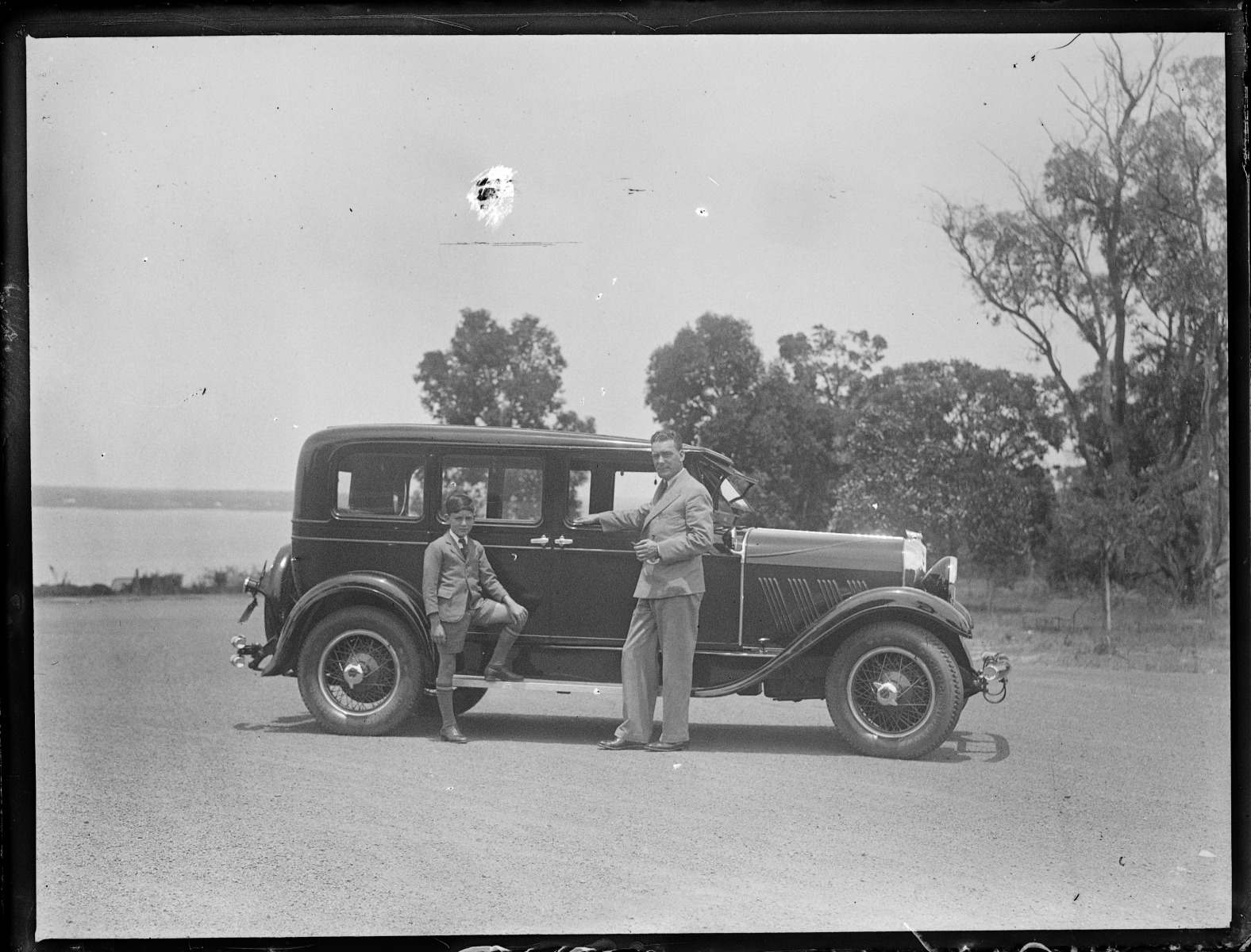 049746PD: Mr A.E. 'Ted' Lightfoot, W.A. manager for Fox Films with his new car, the latest model Auburn Sedan, 1929