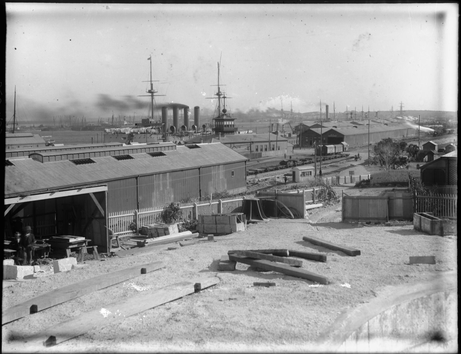 009254PD: View from Arthur Head across the Fremantle Railway Yards to the harbour, ca. 1905 The Harbour Trust tower in the centre of the photograph stood at the Cliff Street gates of Victoria Quay