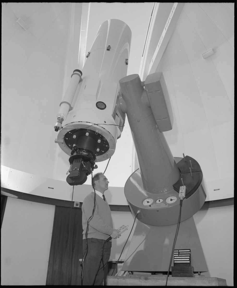 280522PD: Government Astronomer Dr B.J. Harris at the 61cm Perth-Lowell telescope 1971