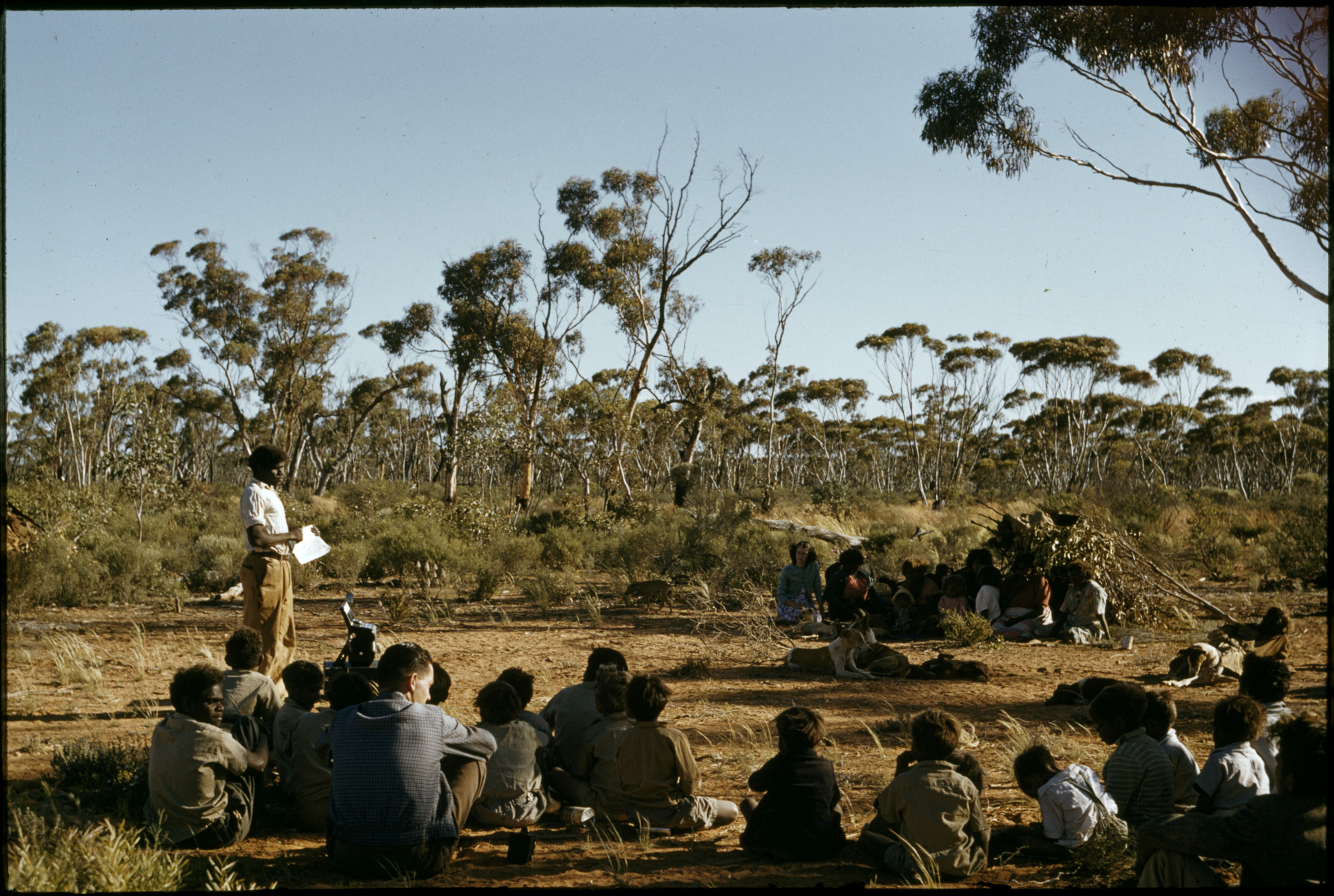 134163PD: Stanley Minning preaching at a camp meeting at Cundeelee, October 1955
