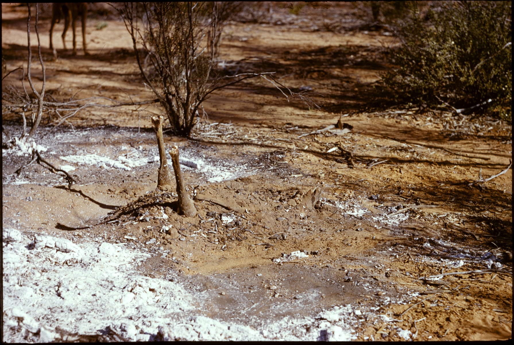 134272PD: Tjurpula Jamieson killing, butchering and cooking a kangaroo in a campfire near Cundeelee, 1977