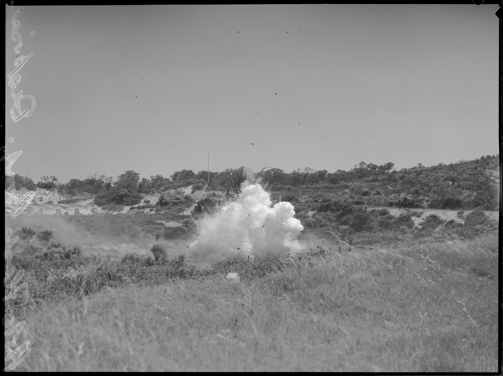 117142PD: Bomb disposal at Swanbourne Rifle Range of surplus photoflash bombs used by the U.S. Navy aircraft for night photography, 27 December 1945