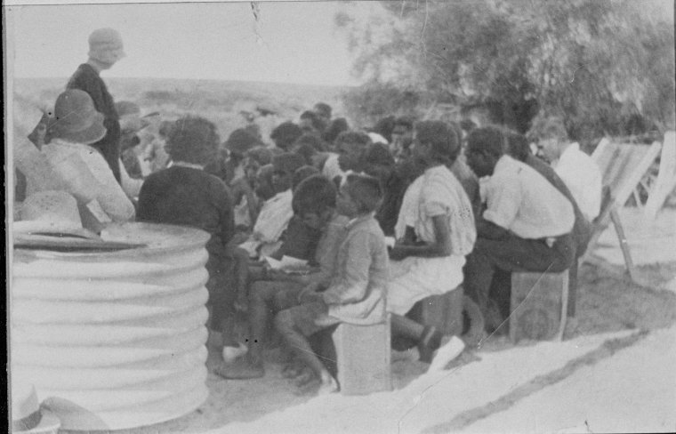 060925PD Miss Mary Belshaw with the church congregation at Badjaling