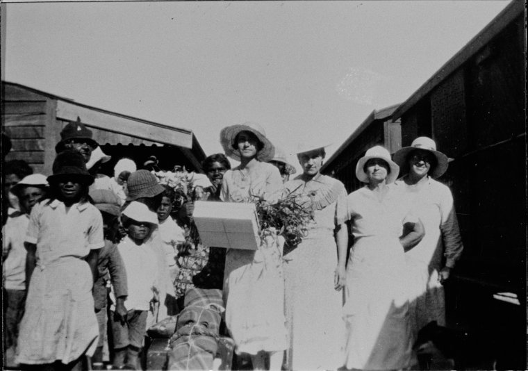 060982PD Missionaries at Badjaling siding, just having arrived by train in the early 1930s.