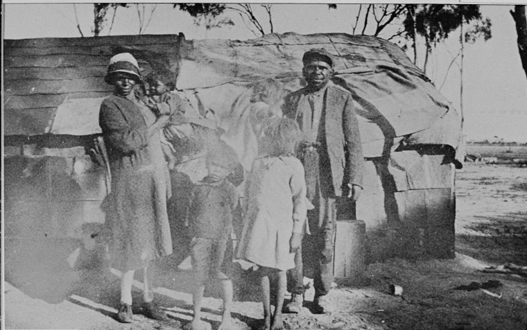 060984PD Maria and Bob Mead and children at their camp at Happy Valley near Badjaling in the early 1930s.
