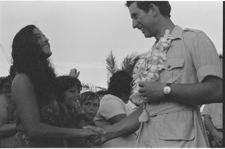 297244PD: Prince Charles is presented with a lei in Broome, 22 March 1979