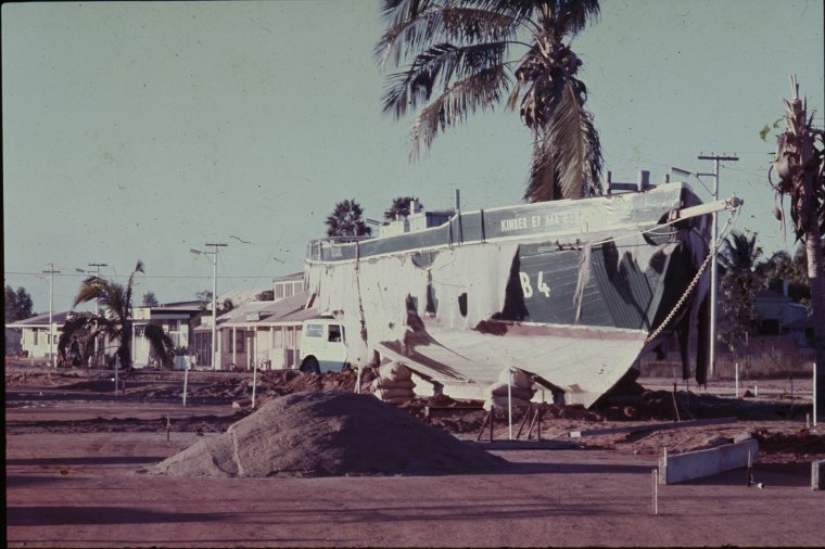 378009PD: Pearling lugger Kimberley Male in Chinatown, Broome awaiting renovation, 1977?