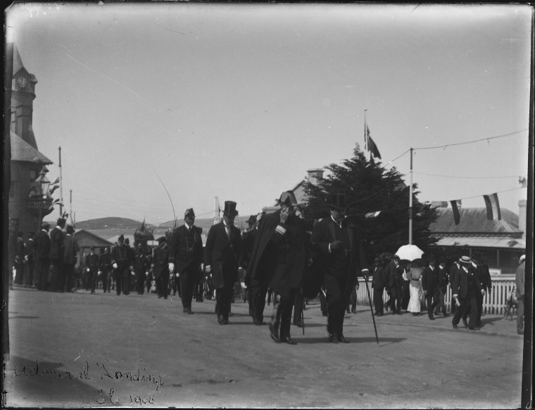 016805PD: The U.S. Admiral lands at Albany and processed into town, 1908