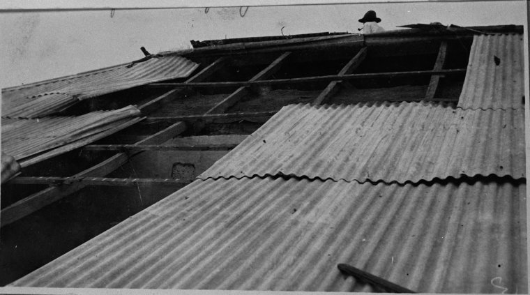 067308PD: Cyclone damage to the roof of Corunna Downs homestead, Boxing Day 1921