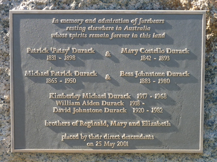 BA2573/37: Plaque dedicated to Durack family members at Argyle Downs Homestead Museum