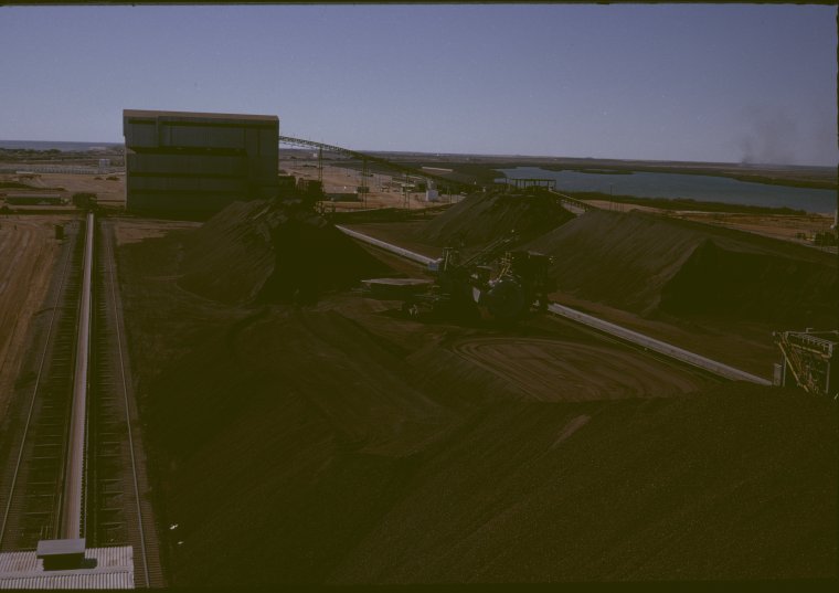 140506PD: Stockpile area for Mt Newman Mining Co. at Port Hedland, 1969?