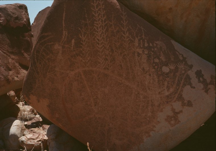 140683PD: Aboriginal rock art along the Mt. Newman Iron Ore Railroad, 187km, 1975?
