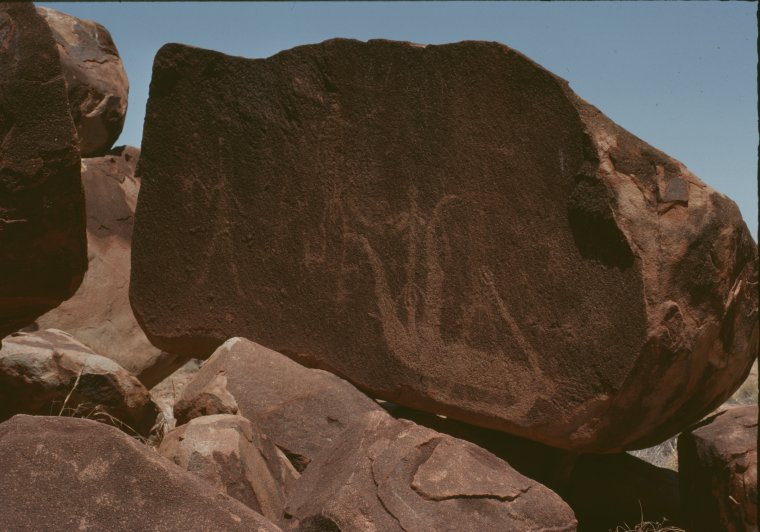 140685PD: Aboriginal rock art along the Mt. Newman Iron Ore Railroad, 187km, 1975?