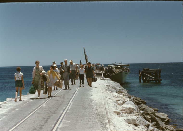 135806PD: Holiday makers arrive at Rottnest Island, 1950s
