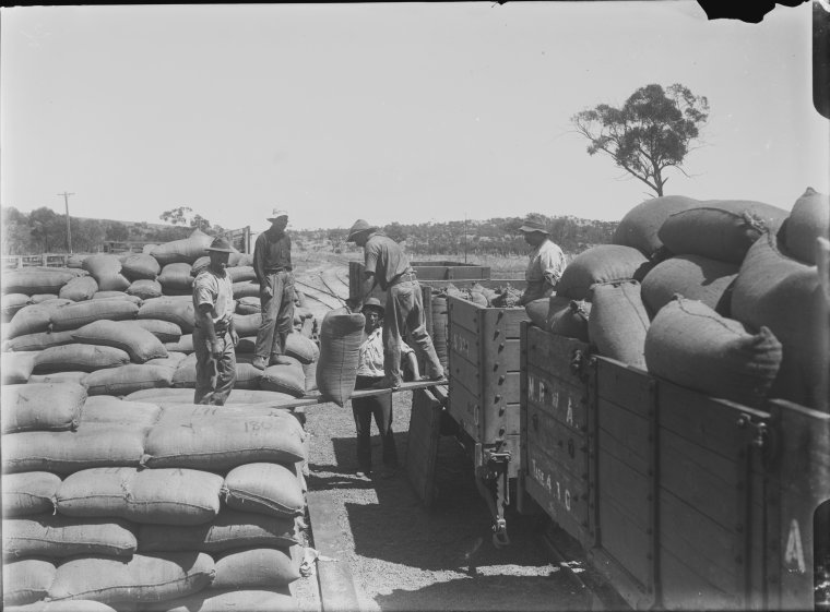 008329PD: Trucking wheat at Yandanooka, 1916