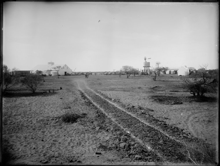 013944PD: Shearing shed and shearers' quarters, Murgoo Station, 1920
