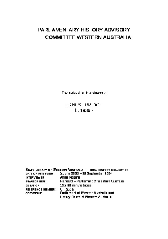 OH3556: Transcript. Interview with Ernie Bridge in 2003-04 by Anne Rogers.