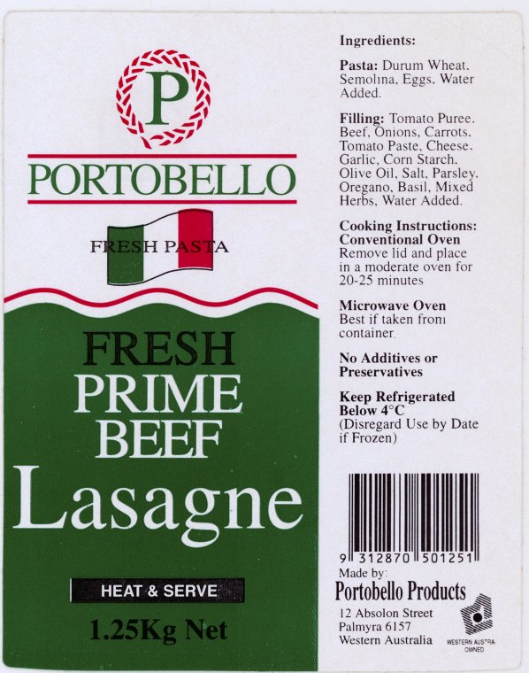 PR8499/LAB/348 Portobello Fresh Prime Beef Lasagna
