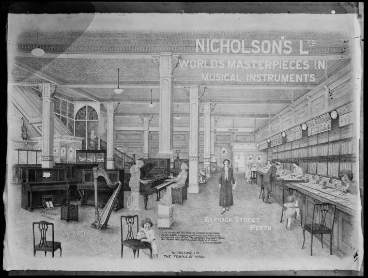 014039PD: Photograph of a drawing advertising Nicholson's Ltd, Barrack Street, Perth, 1927