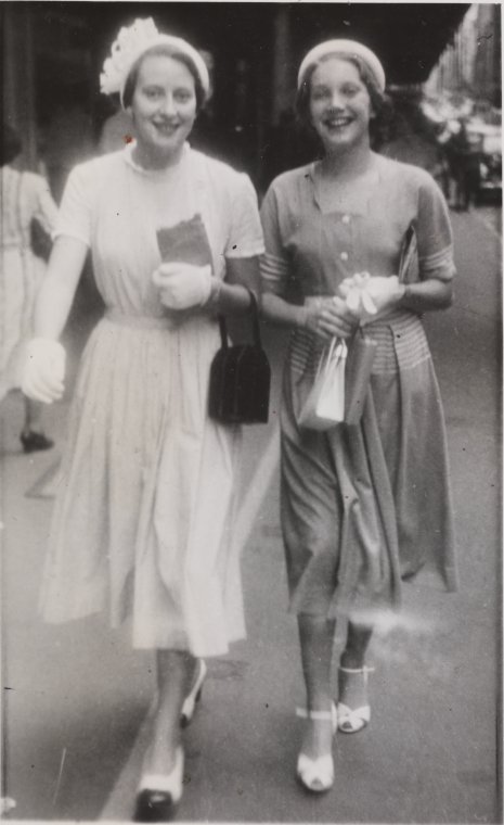 Virginia with her cousin Jillian Rockingham, Sydney, 1949 or 1950.