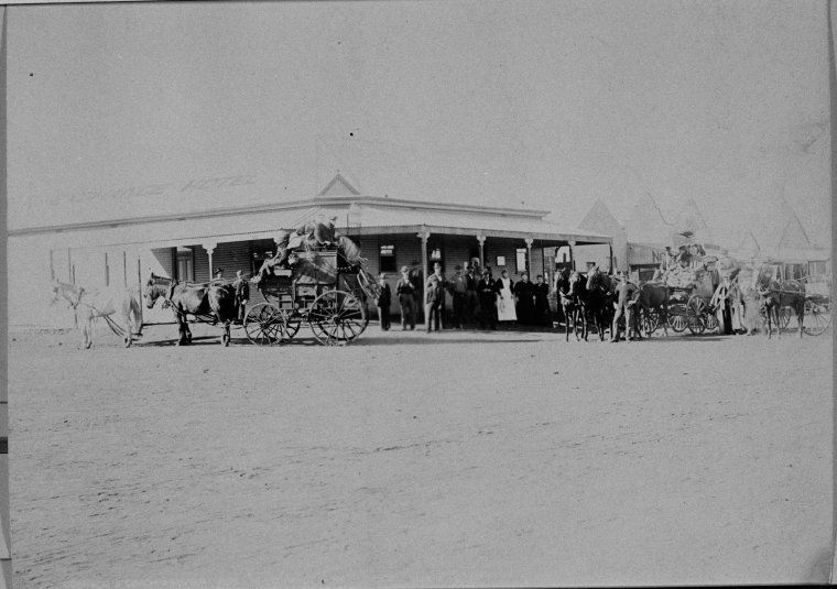 024279PD: Coaches in front of the Exchange Hotel, Leonora, ca. 1900