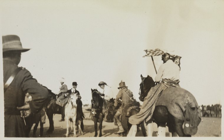 BA2629/21: Caption provided by donor: "Fancy dressed riding at sports, Moascar camp".