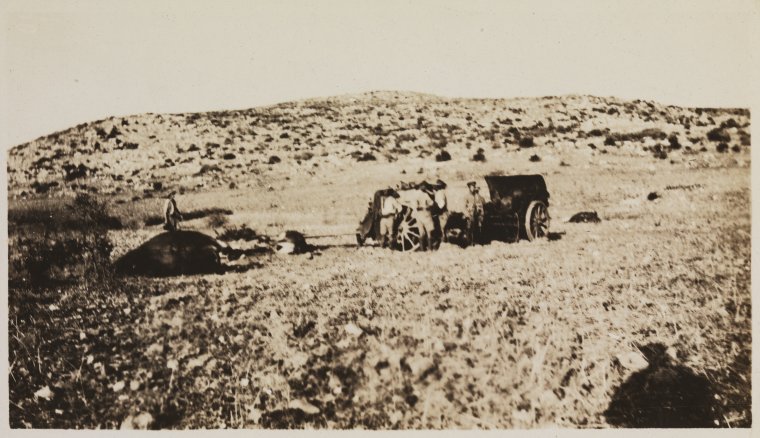 BA2629/30: Caption provided by donor: "Captured gun team 'well done in' note dead horses".
