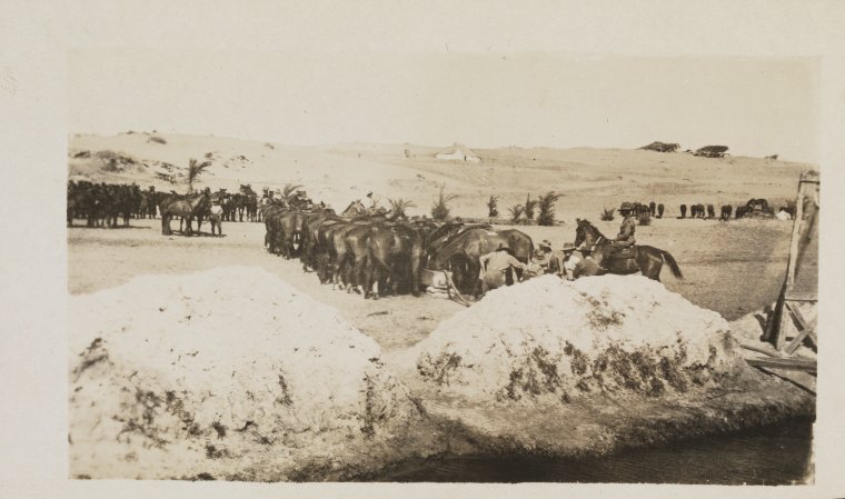 BA2629/33: Caption provided by donor: "Watering at one of Belaks pumping pools".