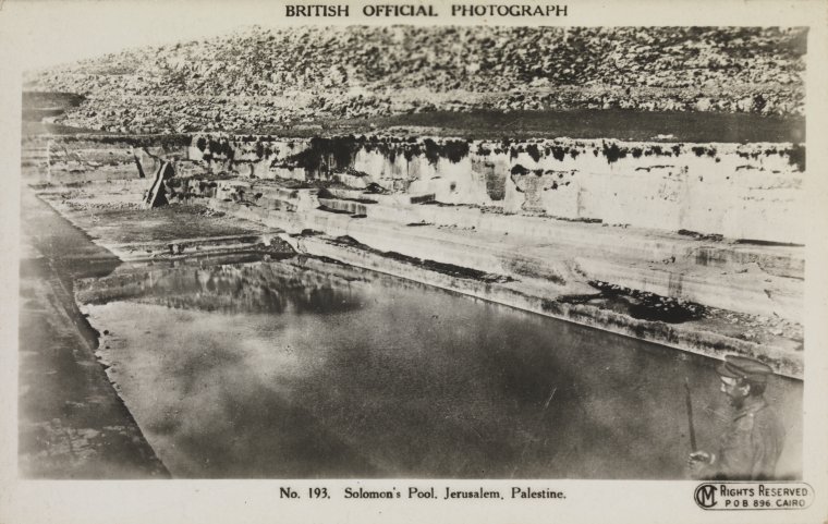 BA2629/42: Caption provided by donor, possibly written on reverse of postcard: "Solomon's Pool, Jerusalem, Palestine. Had a few swims in this pool. They are from anything to 4 chains across and about 6 to 7 long and about 30 to 40 ft deep; three of them