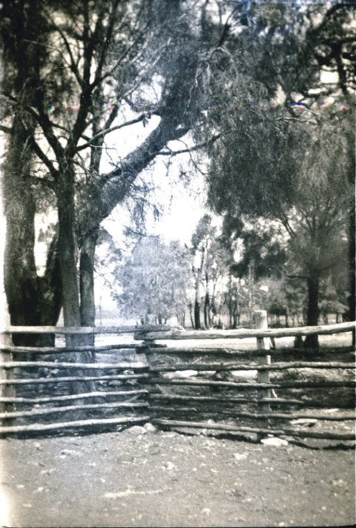 Fence constructed using saplings, ca 1935.