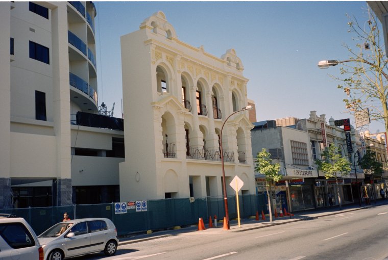 371611PD: The new Medina Executive Barrack Plaza hotel behind the heritage listed facade of the Railway Hotel, 2006