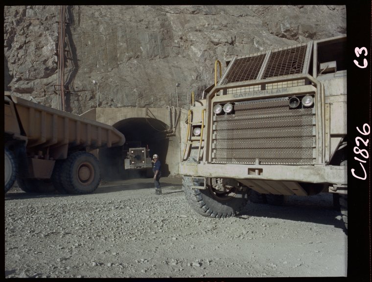 320387PD: Trucks moving ore at Teutonic Bore mine, 1983